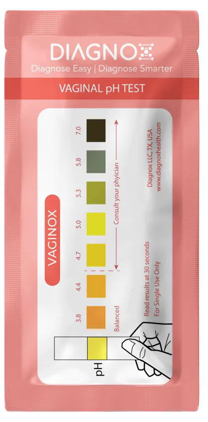 The acidity level vaginal fluids combined with physical symptoms helps in determining the overall health of the vagina as well as provides clues about different vaginal infections, such as vaginal yeast infections, bacterial vaginosis, trichomoniasis (trich), and other infections. Vaginox by Diagnox is an at-home vaginal pH test that measures the acidity of the vaginal fluid and helps to determine the potential risks to different vaginitis.