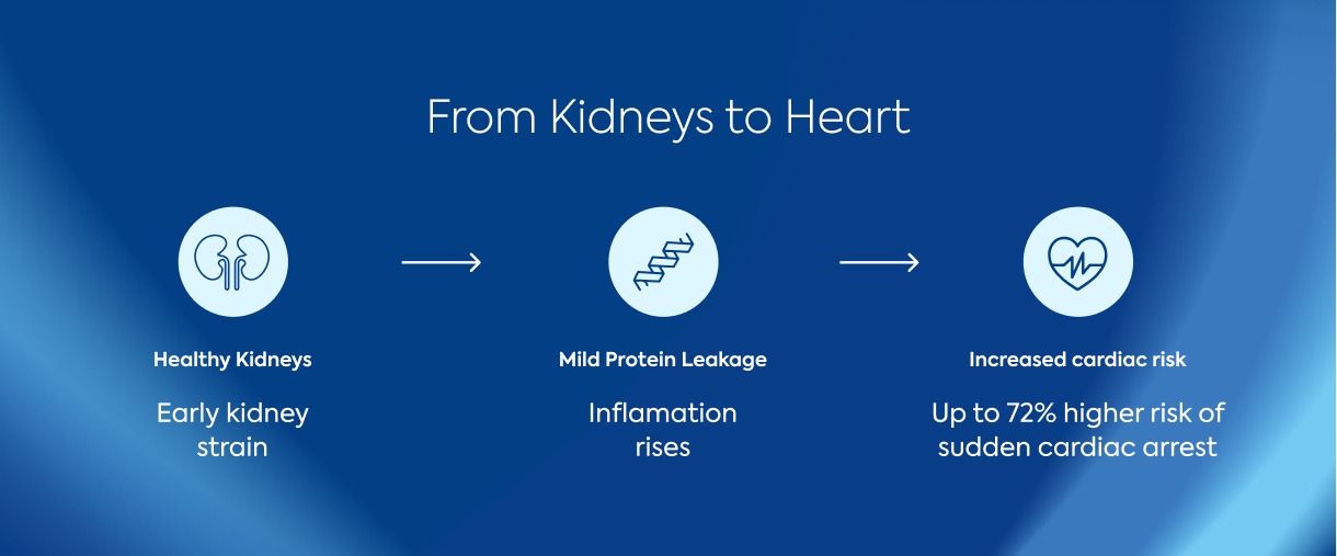 Protein in urine is more than a kidney marker. It can be an early clue that your cardiovascular system is under strain. Research shows that even mild levels are linked with an increased risk of sudden cardiac arrest in the young population [1]. At-home testing gives you the chance to understand what’s happening inside your body, track changes, and make informed choices about your wellness.